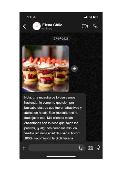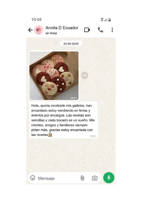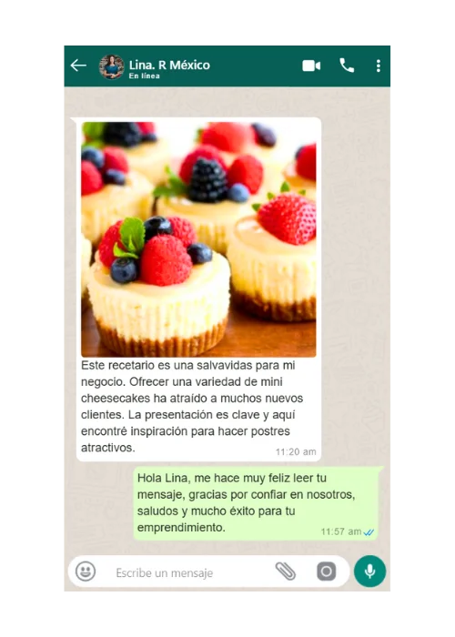 Este no es un recetario genérico. Está diseñado especialmente para emprendedoras que quieren vender postres que se venden rápido, fácil de elaborar y con un paso a paso detallado y presentación profesional. Ya tenemos más de 1500 alumnas en todo el mundo con magníficos resultados.